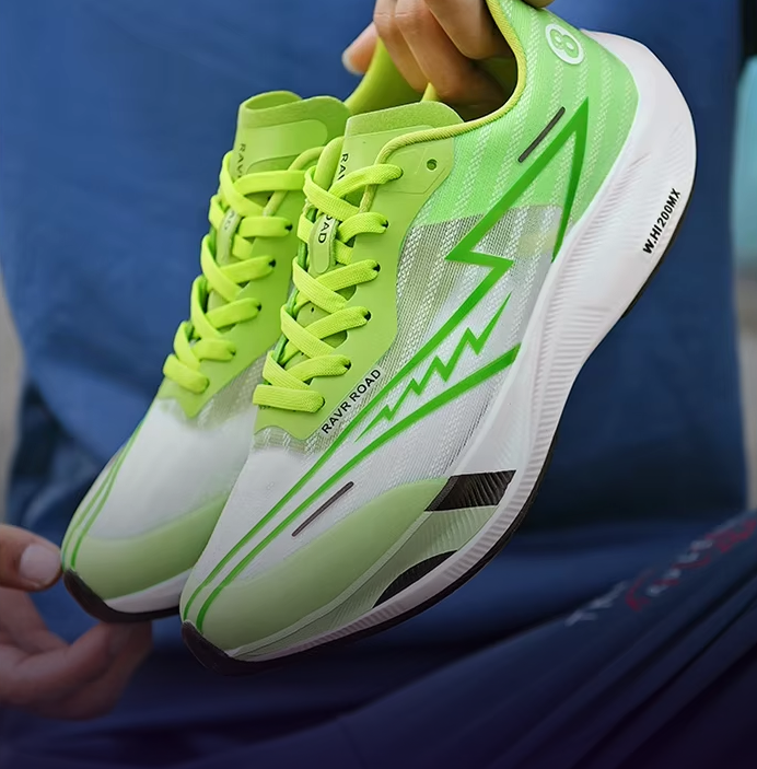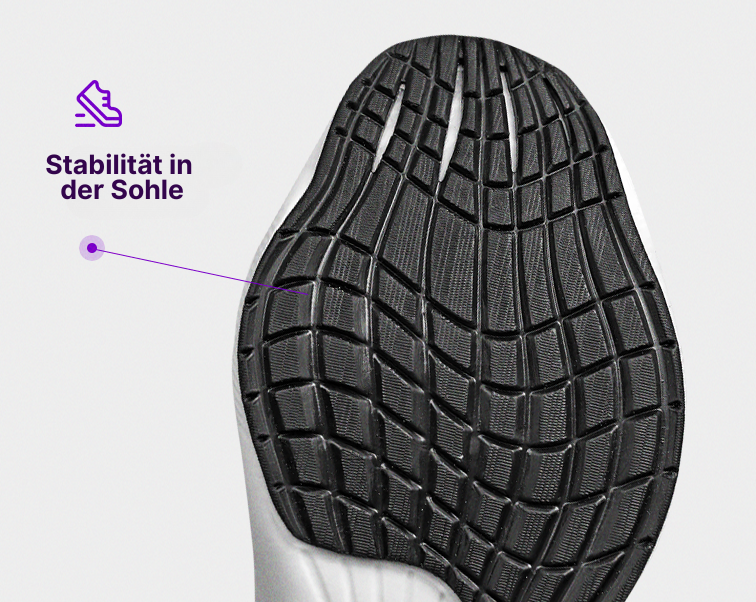 Stabilität auf jedem Untergrund! Die rutschfeste Sohle des Carbon-Sneakers bietet außergewöhnliche Traktion und sorgt für Sicherheit und Vertrauen bei all deinen Läufen und Spaziergängen. Kein Ausrutschen – nur Leistung.