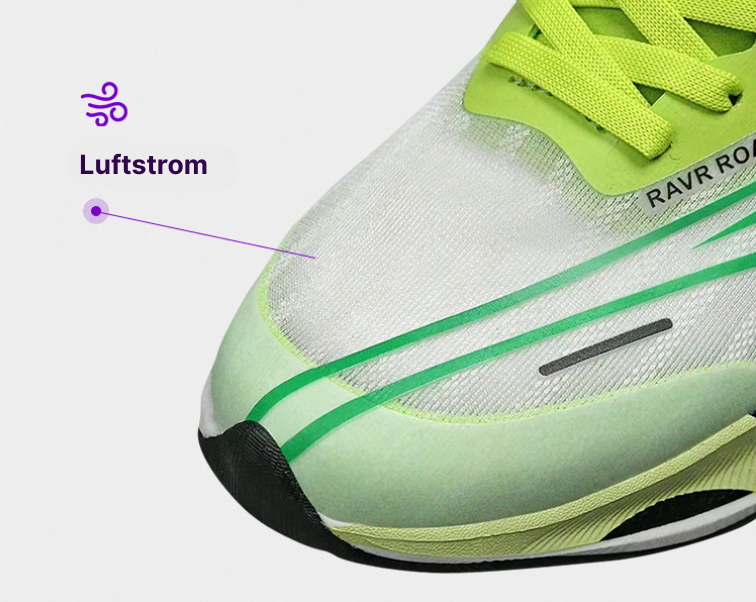Lauf mit Leichtigkeit und Frische! Der Carbon-Sneaker besteht aus atmungsaktivem Gewebe, das deine Füße auch bei den anspruchsvollsten Läufen trocken und bequem hält. Komfort, der mit deinem Tempo Schritt hält.